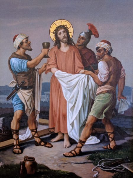 Ո՜վ աստվածային Փրկիչ, կարծես, Քո կրած բազում չարչարանքները բավական չէին, հիմա ուզում են Քեզ մերկացնել: Դու, Տե՛ր, հզոր թագավոր, ամենակալ Աստված, թույլ ես տալիս, որ Քեզանից խլեն անգամ Քո պատմուճանը, և ոչինչ ունենաս այս աշխարհի վրա. համաձայնում ես, որ մերկացնեն Քո կուսական սուրբ մարմինը, Դու, որ խորին համեստության եւ պարկեշտության աղբյուն ես: