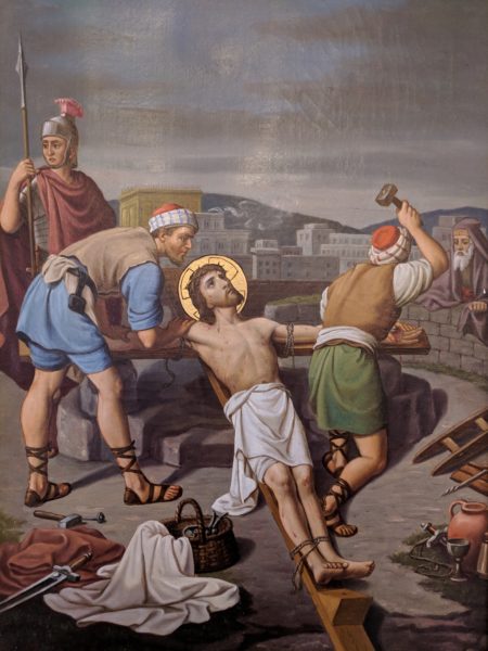 Ո՜վ աստվածային Փրկիչ, հասել ես Գողգոթայի ստորոտը և կրկին ընկրկում ես խաչի ծանրության տակ: Պաշտելի դեմքդ փոշեծածկ է, վերքերիցդ առատորեն արյուն է հոսում, ուժասպառ ես, սակայն հալածիչներդ վայրագ կատաղությամբ քեզ վեր են բարձրացնում, որպեսզի անհապաղ քեզ խաչին գամեն: